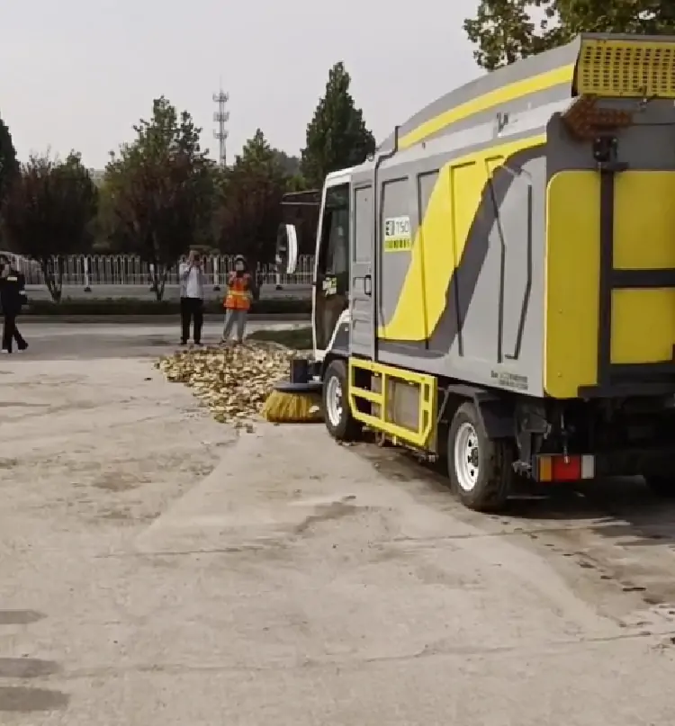 當秋季來臨不僅寓意著我們出門要加衣服,注意防寒,小心感冒,還寓意著大批量變黃的樹葉要集中掉落了。不管是市政環(huán)衛(wèi)人行道路面,還是企業(yè),工廠,學(xué)校,景區(qū),園區(qū)等地方的院內(nèi)都會形成大量樹葉堆積清理,收集,轉(zhuǎn)運難的現(xiàn)象,為了抑制這種時間發(fā)生造成環(huán)境,日常生活的困擾很多企事業(yè)單位,環(huán)衛(wèi)部門都在使用樹葉收集器“家族”,其中大型樹葉收集車運用領(lǐng)域廣泛,吸葉效果高,非落葉季還能用于高壓沖洗,清掃等工作頗受青睞。此次某環(huán)衛(wèi)部門以及環(huán)衛(wèi)工人,到達現(xiàn)場參觀車輛工作情況,以及操作流程。