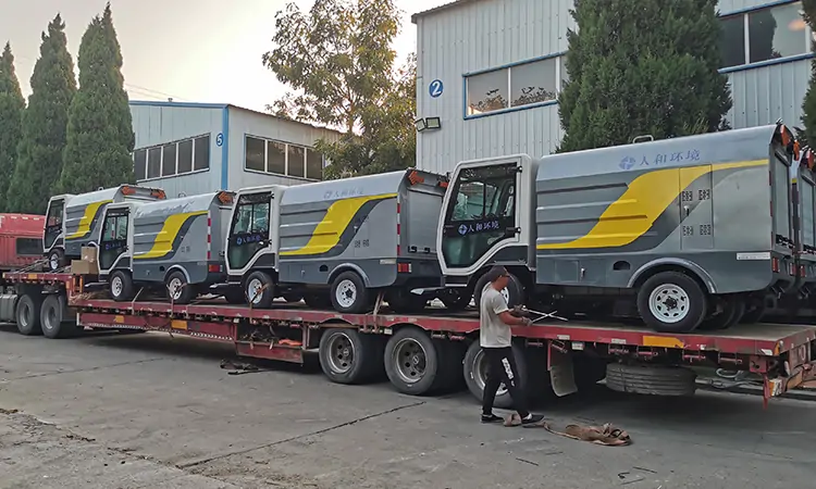 近日發(fā)往某環(huán)衛(wèi)公司的四輪多功能高壓清洗車已裝車準(zhǔn)備出發(fā)
