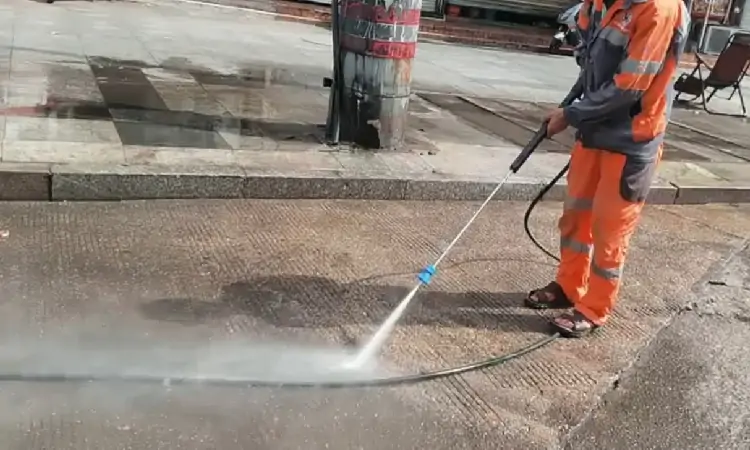 發(fā)往某環(huán)衛(wèi)公司的小型高溫高壓清洗車經(jīng)過工人的一天學(xué)習(xí)今日開始上路清潔工作,這次沖洗的是重油污地段,當(dāng)水溫達(dá)到清理油污的熱點(diǎn)時,手持高壓水槍所沖地面油污逐一被沖洗干凈,效果明顯,該車搭載進(jìn)口美國百利通發(fā)動機(jī),意大利AR高壓泵,高壓沖洗壓力大,不傷地面,操作簡單,升溫快。