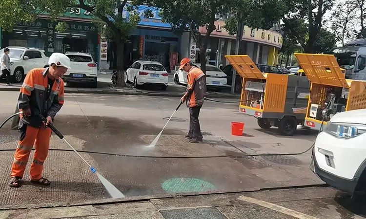 發(fā)往某環(huán)衛(wèi)公司的小型高溫高壓清洗車道路清潔效果好