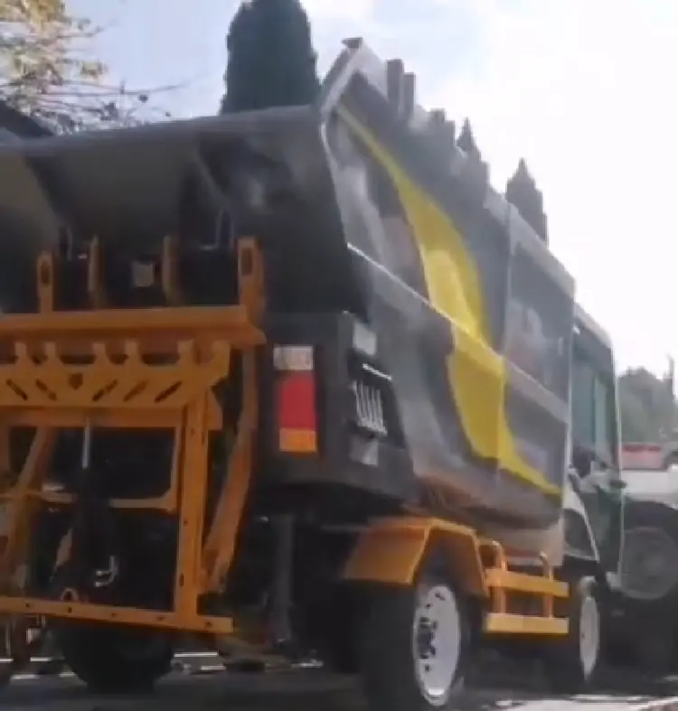 發(fā)往某環(huán)衛(wèi)公司的電動垃圾清運車裝車完畢準(zhǔn)備出發(fā)